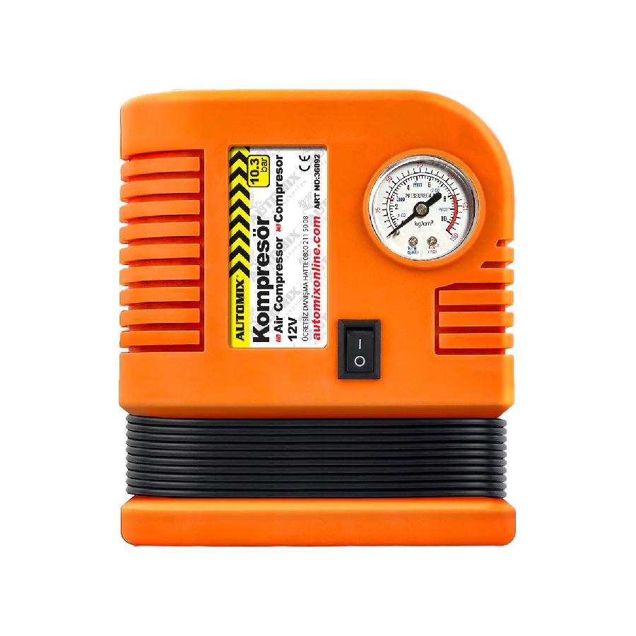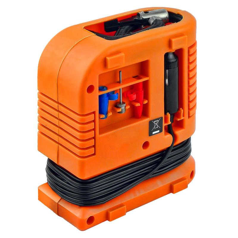 Bu taşınabilir hava kompresörü, otomobil lastiklerinden bisiklet lastiklerine, spor ekipmanlarından şişme oyuncaklara kadar her şeyi hızlı ve kolay bir şekilde şişirmek için mükemmel bir çözümdür. 10.3 bar (300 PSI) maksimum basınç kapasitesi ile en zorlu görevlerin bile üstesinden gelir. Turuncu renkli, dayanıklı ve kompakt tasarımı sayesinde kolayca taşınabilir ve aracınızda veya evinizde az yer kaplar.