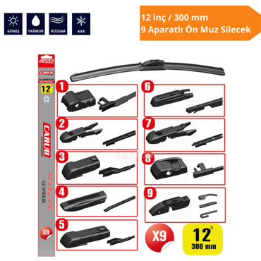 9 Aparatlı Ön Muz Silecek (12 İnç/300 mm)