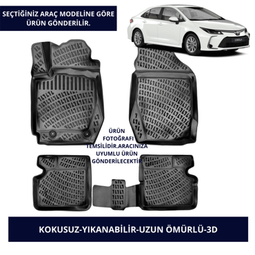 • 3D (3 Boyutlu) Yapı: Aracın zeminini üç boyutlu olarak kaplayarak kir ve sıvıların dışarı taşmasını engeller.